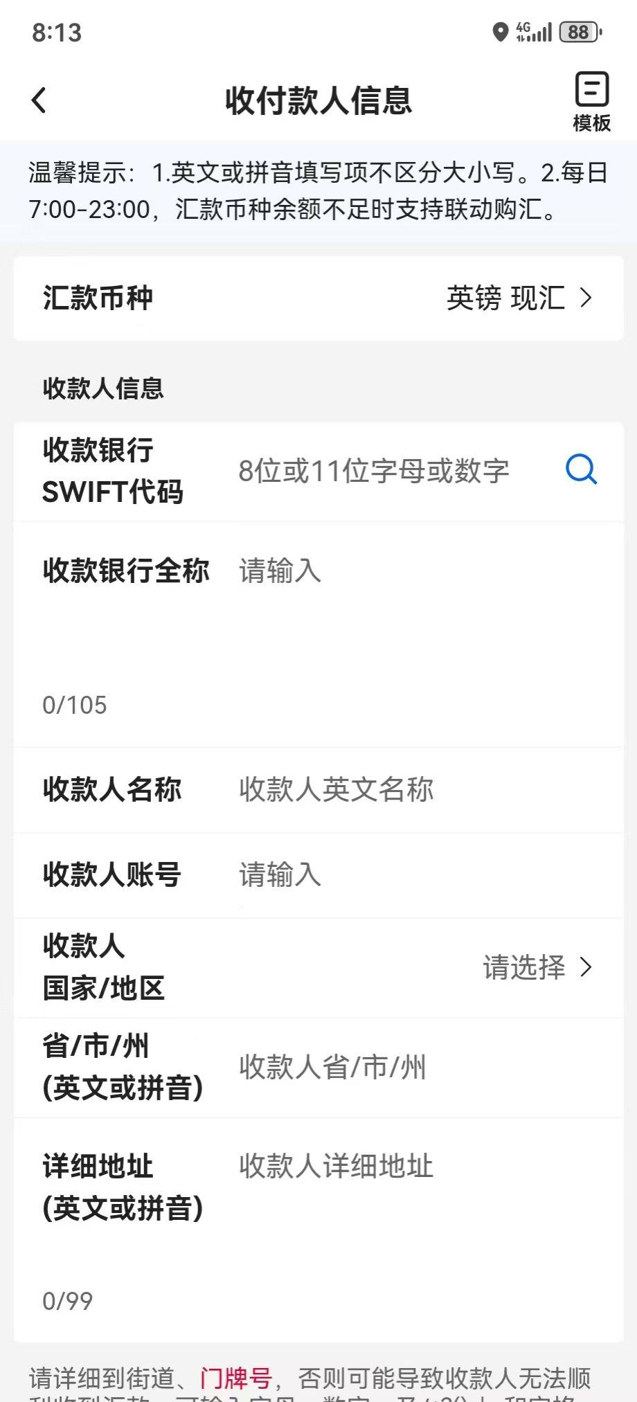5. 信息准确性:收款人姓名、账号及SWIFT代码需与银行信息完全一致,否则可能导致退汇或延误。