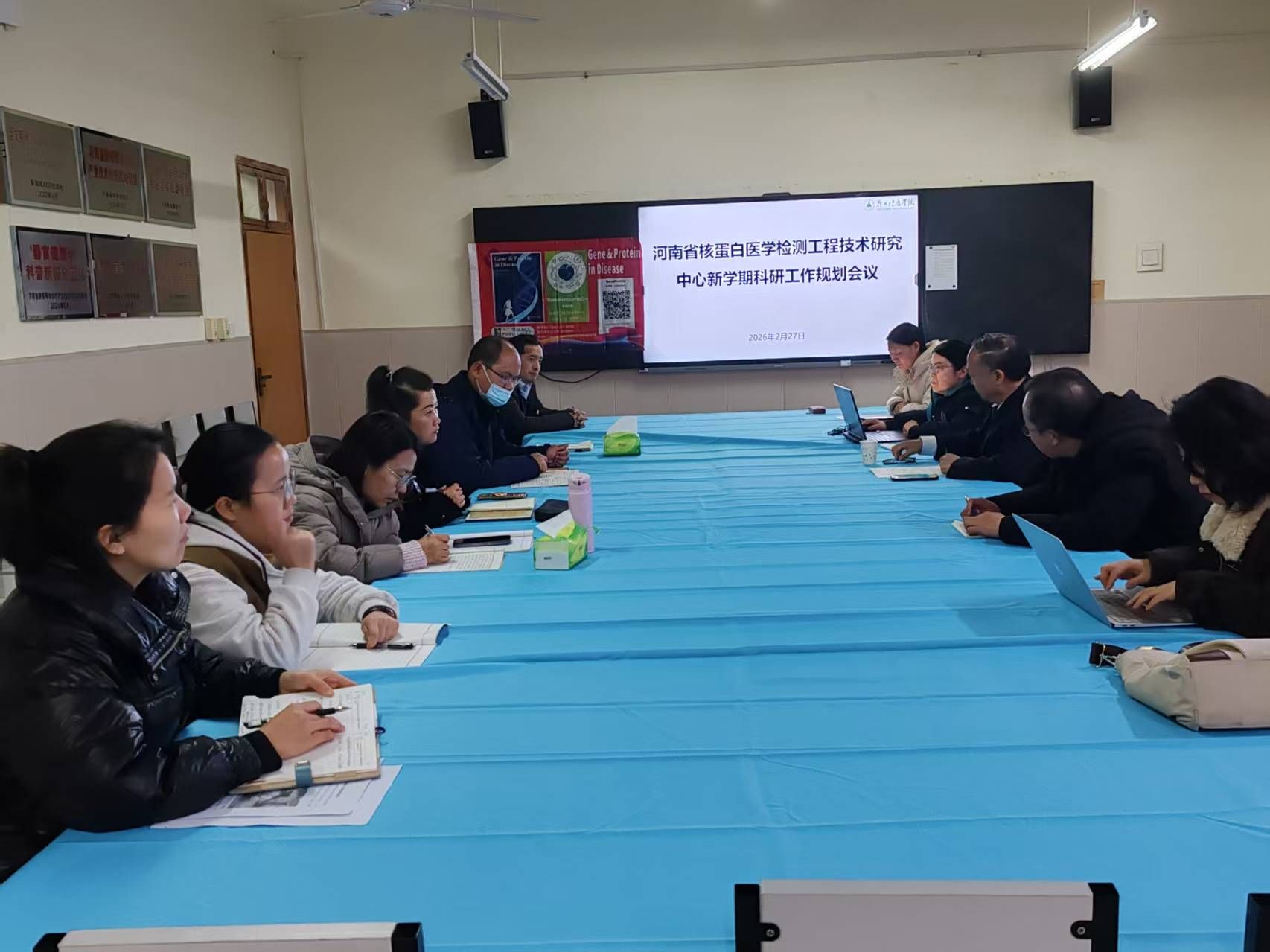 2026年2月27日,河南省核蛋白医学检测工程技术研究中心新学期科研工作规划会议在分子医学中心顺利召开。在中心负责人姬新颖教授的带领下,工程中心骨干成员齐聚一堂,总结过去一年的丰硕成果,擘画新一年的发展蓝图。