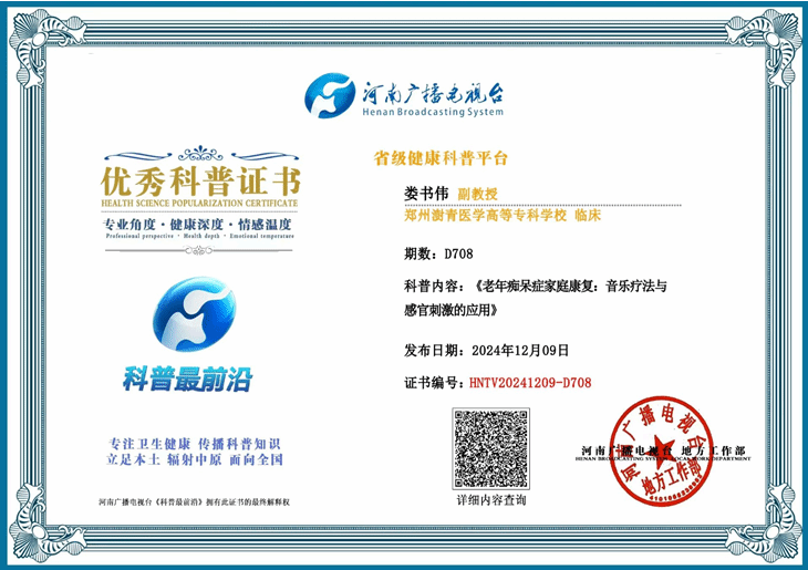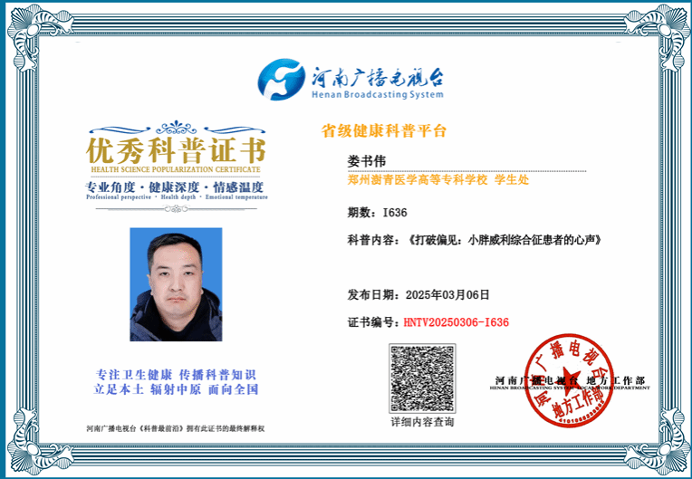 这条从偶然开始的道路,认识到健康科普背后巨大的社会责任和精准服务的必要性。2025年8月被聘为郑州市科普专家团成员,聘期五年。终将通往必然的使命:用科学与温情,为更多人的美好生活注入理性之光。初心不改,前行不止,这既是我个人的成长之路,更是这个科学时代赋予每个科普人的责任与荣光。