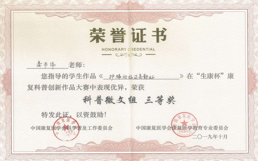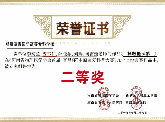 从“比赛”到“解读”前沿。围绕举办校级康复科普比赛,参加河南省物理医学学会首届“百昌杯”中原科普大赛作品《拯救低头族》荣获二等奖、《来自星星的你,我该怎么去爱》荣获优秀奖。科普是在科学性、严谨性与通俗性见平衡的得与失。不仅是知识的传递,更是科学思维和好奇心的培养。