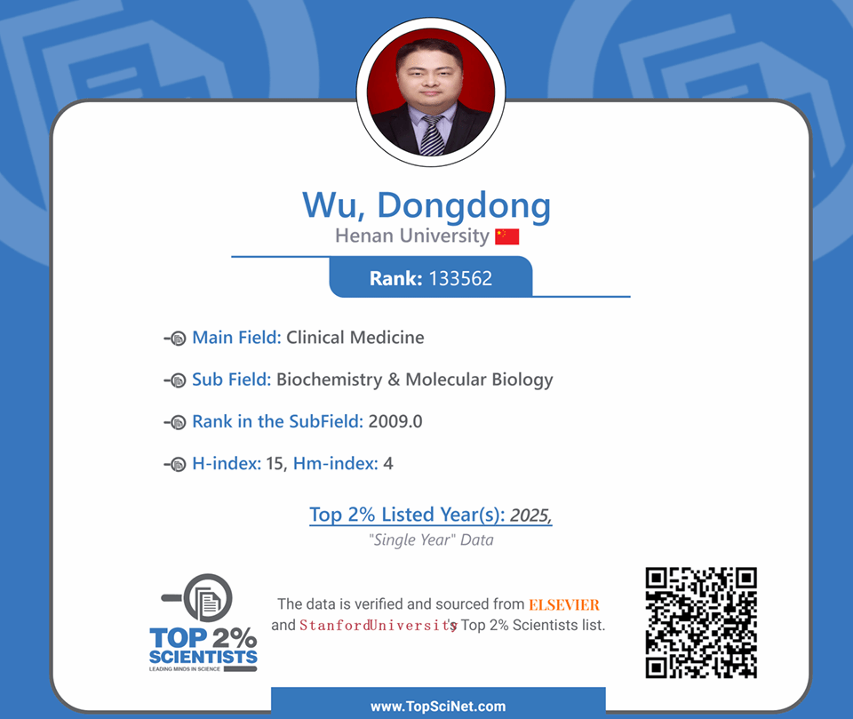 学术影响彰显,青年骨干吴东栋教授入选“全球顶尖2%科学家”榜单,团队全年发表SCI论文超31篇;